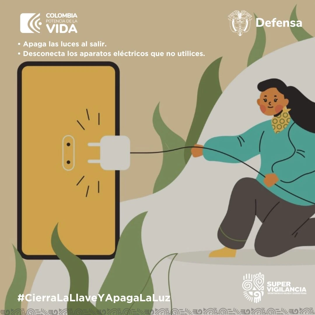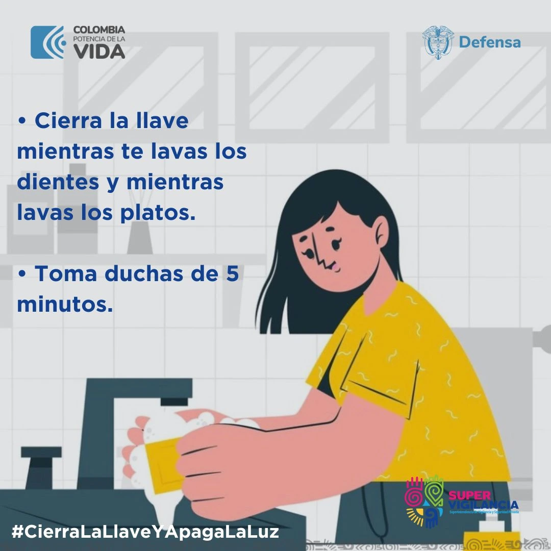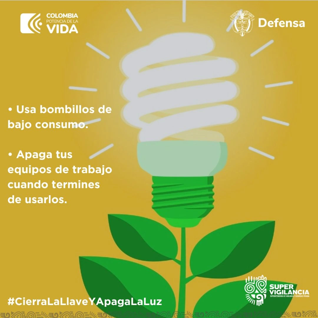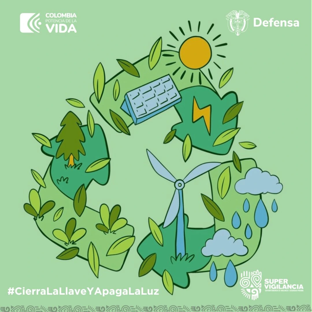 Por esta razón la Superintendencia de Vigilancia y Seguridad se une al llamado que se viene realizando desde el Gobierno Nacional a través del Ministerio de Ambiente y reiteramos la importancia de la campaña #CierralaLlaveyApagalaLuz, mediante la cual se reiteran algunos tips muy sencillos de implementar en nuestras casas y sitios de trabajo, lo cual nos permitirá que a través de un trabajo conjunto y con la participación activa de toda la ciudadanía podamos brindar un importante grano de arena para el cuidado de nuestros recursos naturales.