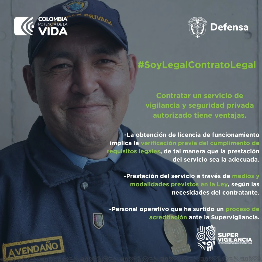 La Superintendencia de Vigilancia y Seguridad Privada invita a todas las personas naturales y jurídicas que realizan procesos de contratación de vigilancia y seguridad privada, tanto para el sector residencial como para el sector comercial, a tener en cuenta toda la reglamentación para acceder a estos servicios de contratación, ya que no solamente están realizando un proceso que cumple con todas las garantías de ley, sino que además, y muy importante, están salvaguardando la integridad de las personas y los bienes que estos servicios tienen a su cargo, puesto que al contratar servicios formalmente establecidos, pueden contar con personas que tienen la idoneidad para ejercer estas actividades y también que están recibiendo una remuneración acorde con lo estipulado por las leyes colombianas.