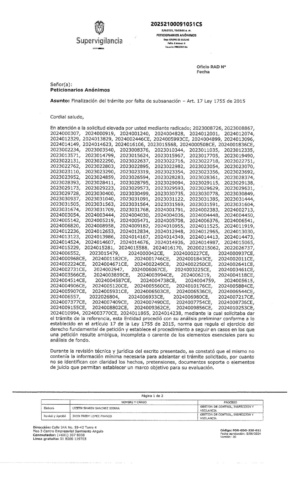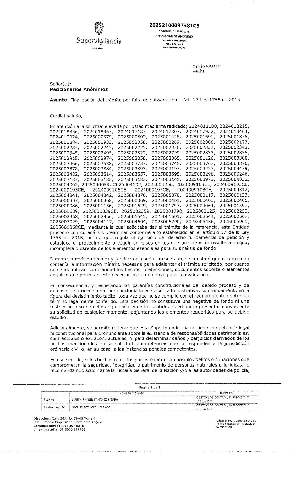 Comunicaciones y Oficios dirigidos a grupos de interés