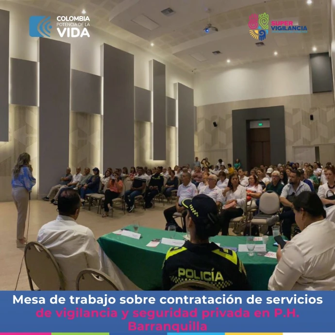 En mesa sobre el tema, que se da en el marco del Convenio Interadministrativo CD-33-2022-4575 firmado entre la Superintendencia de Vigilancia y Seguridad Privada y la Alcaldía de Barranquilla se dialogó con los representantes del sector sobre la importancia de la contratación de servicios formalmente establecidos de vigilancia y seguridad privada y las ventajas que tiene para los propietarios y habitantes de las diferentes unidades residenciales el contar con este tipo de contratación, frente a otro tipo de servicios.