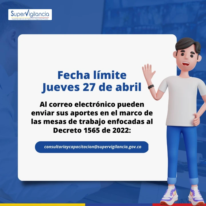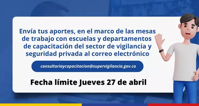 Los aportes se reciben hasta el jueves 27 de abril de 2023 al correo electrónico consultoriaycapacitacion@supervigilancia.gov.co